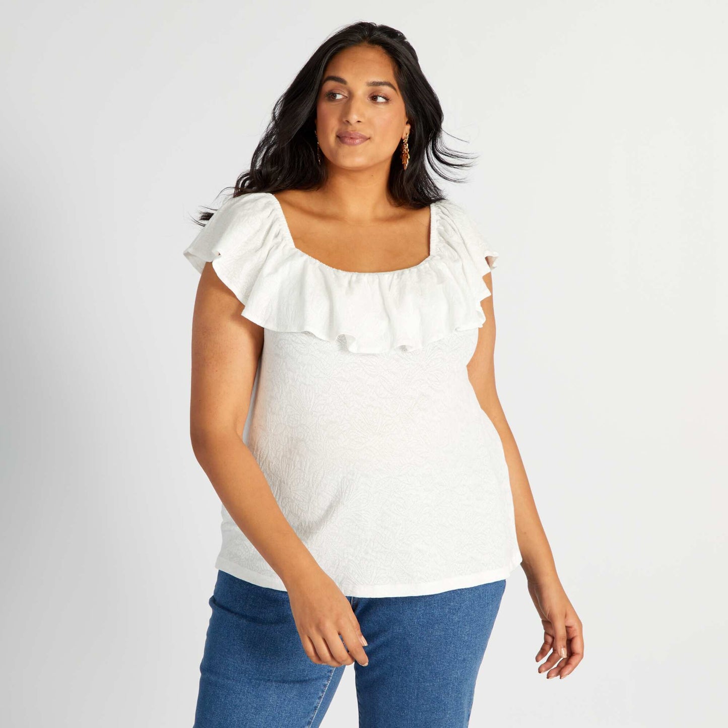 Débardeur col bardot volanté blanc